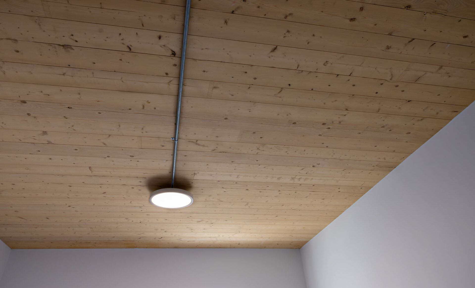 The use of prefabricated mass timber enabled rapid, precise, and cost-effective construction while minimizing carbon-intensive on-site work. The build was further streamlined with pre-assembled kitchen and bathroom pods, and a slab-on-grade foundation eliminated the need for a basement.