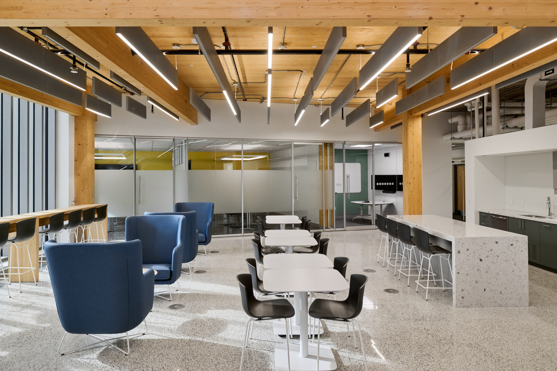 Beyond sustainability, another key objective was to create a beautiful and welcoming workplace for administrative and field staff. With abundant natural light, tall ceilings, and large open spaces, the design emphasizes comfort and productivity. The Operations Centre is a true multi-purpose facility – in addition to office space, it features bench seating areas, flexible workspaces, specialized technical training rooms, an industrial facility and warehouse and a five-acre operations yard.