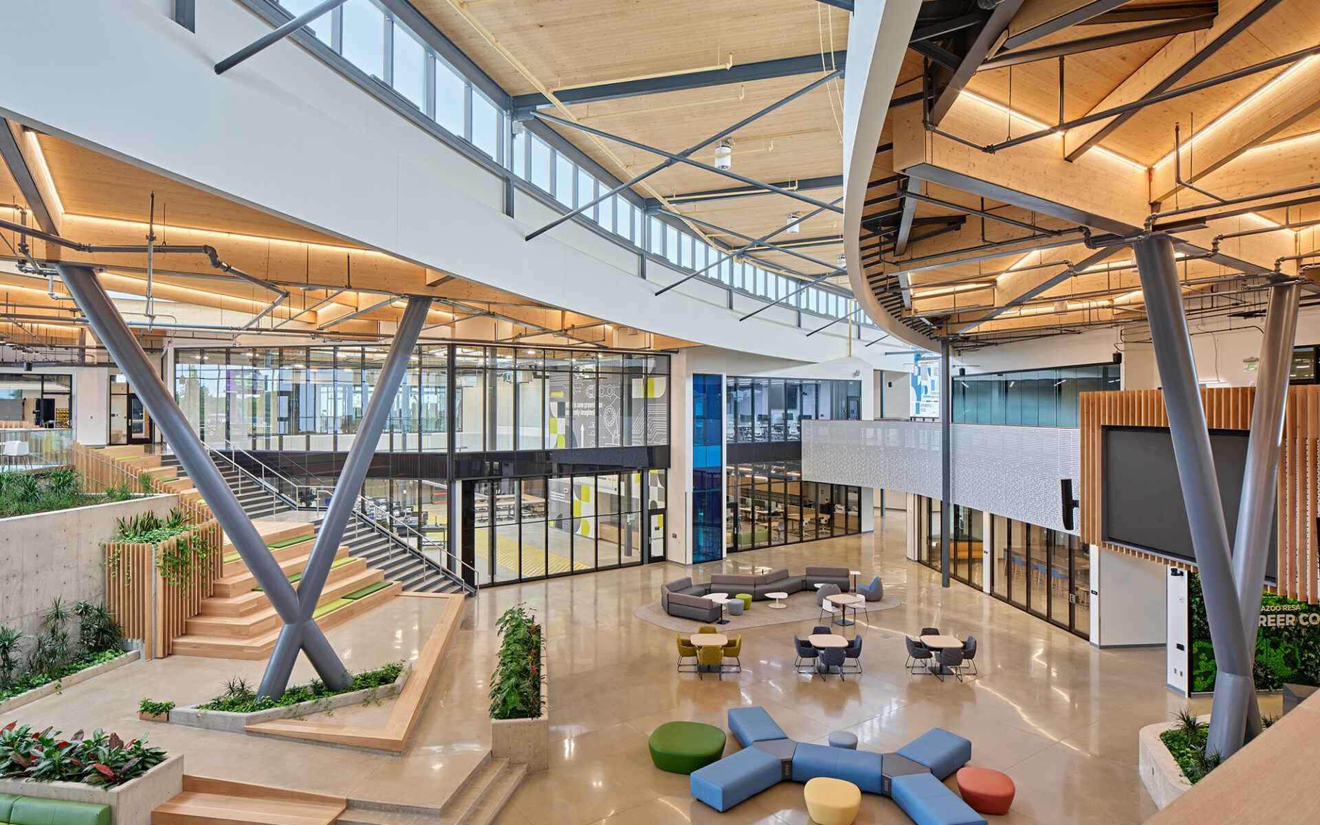 The result is a soaring and inspiring environment for experiential learning, delivering both performance and beauty. This sustainable, student-centered design fosters a connection to nature while preparing the next generation for high-demand careers.