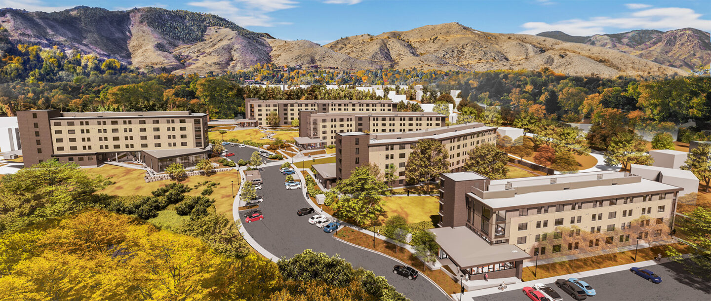 Responding to the growing demand for student housing at the Colorado School of Mines, the university redeveloped the aging, low-density Mines Park complex, demolishing six outdated buildings and replaced them with five apartment buildings – four utilizing mass timber.